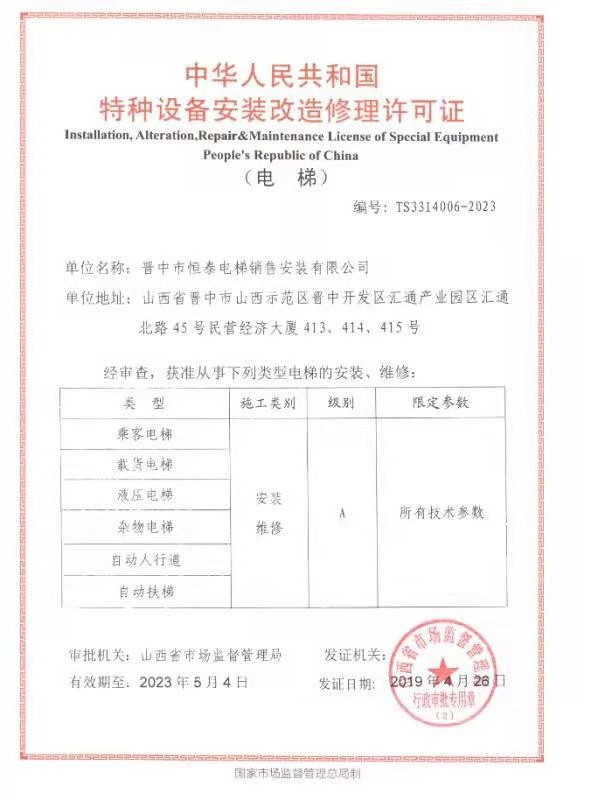 版權(quán)所有:晉中市恒泰電梯銷售安裝有限公司 電話:0354-3073280